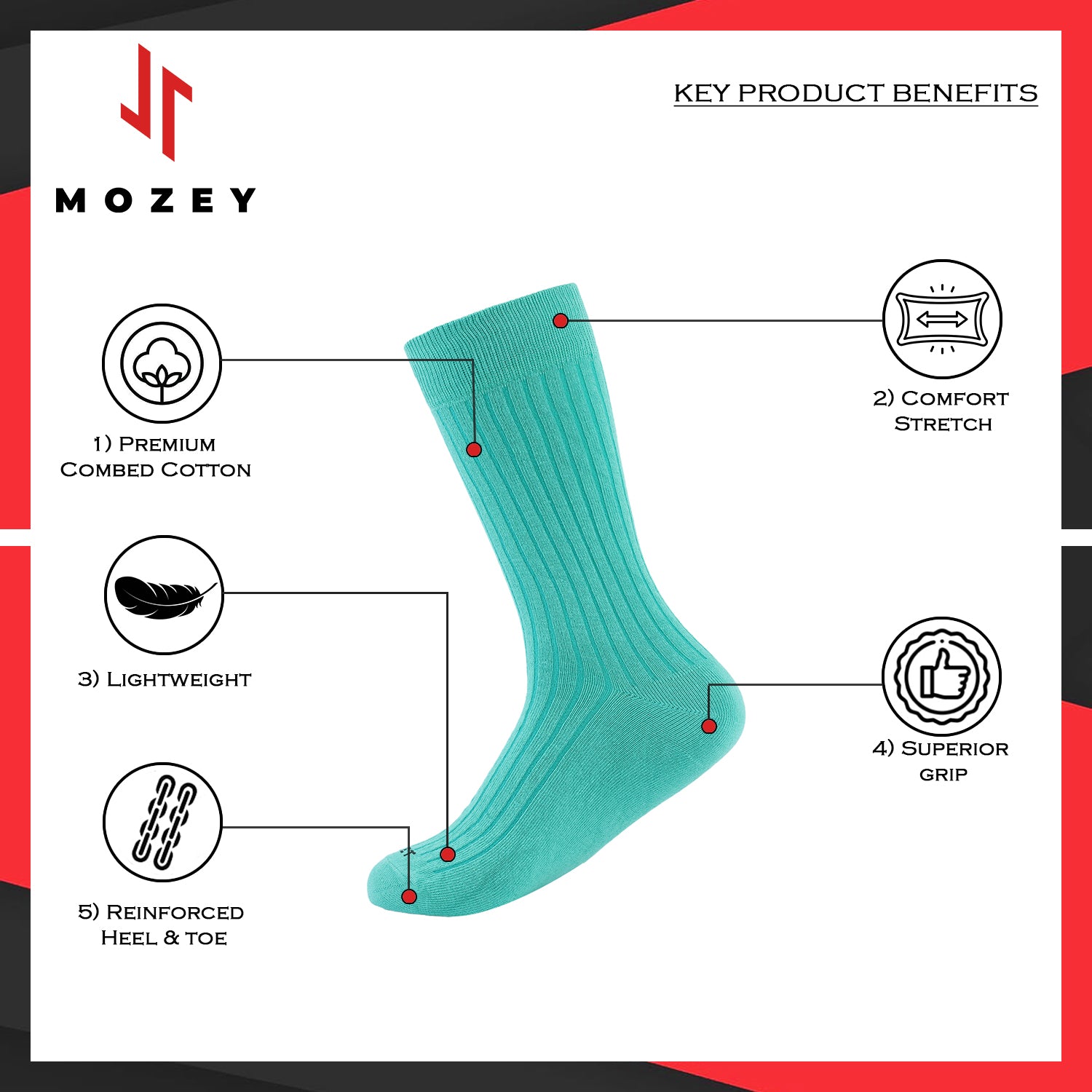 ANTI-BACTERIAL WASH: All the socks from Mozey are treated with Anti-bacterial wash which help to kill the bacteria that cause odor and infection, leaving your feet feeling fresh and clean.